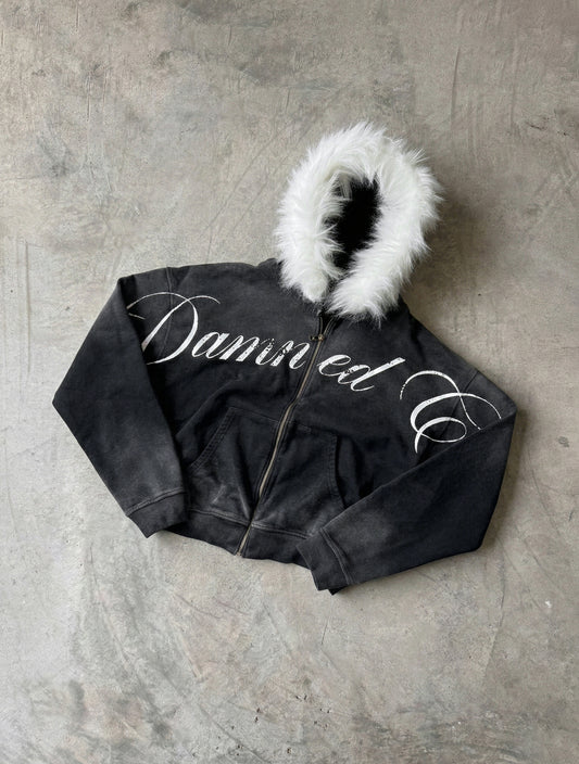 BADCULT GRAY FUR ZIP UP