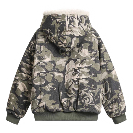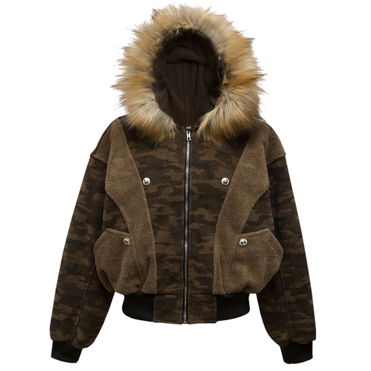 DAMNED CULT CAMOUFLAGE FUR HOODED JACKET