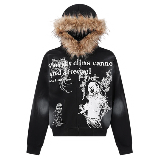 DAMNED CULT FUR HOODED SHERPA JACKET